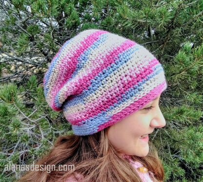 Includes pattern for the Variegated Slouchy Hat in two sizes: