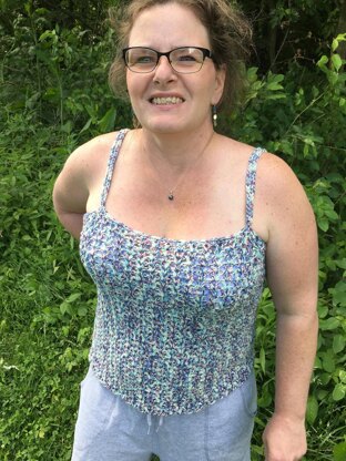 I used Lion Brand Comfy Cotton Blend in designing the cami so it is a lighter weight of yarn and a lighter fit.