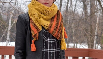 Versatile is the name of this square blanket scarf … It is versatile because you play with colours... I chose my colours and this name because of the Wool Malabrigo Arroyo “volcan” and the colours I used Apricot and mustard shades that made me think of flame and fire kind of my personnality! All the colours are mixed in that shawl from the dark to the light (the fire). Wear the colour you feel for the day!! This square measures 100 cm by 100 cm ( blocked) and when you fold it you have a nice triangle shawl with 2 faces. Knit it with the colours that define you the most… with one warm side and one cold side and play with the colours!!