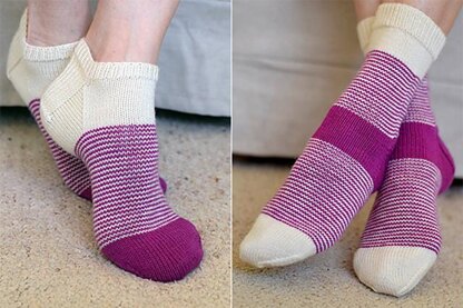 Worked in the round from the cuff-down, the pattern comes with complete instructions for both ankle length and calf length socks. The pattern is provided with written instructions.