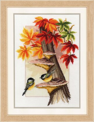 Vervaco Chickadees Between Leaves Cross Stitch Kit - 26 x 37 cm
