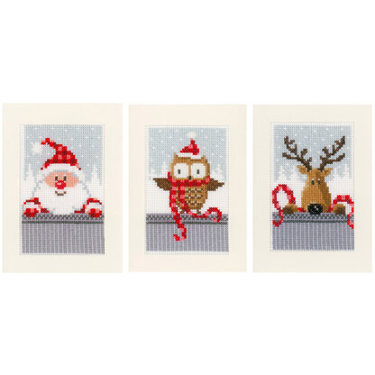Vervaco Christmas Buddies Pack of 3 Cross Stitch Kit - 10cm x 15cm (Greetings Cards)