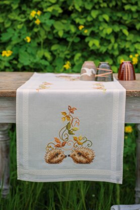 Vervaco Hedgehogs And Autumn Leaves Table Runner Printed Embroidery Kit - 40 x 100 cm