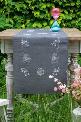 Vervaco White Flowers Table Runner Printed Embroidery Kit - 38 x 138 cm