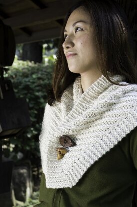 Vianne is a small yet cozy triangular shawl knit in super soft baby alpaca. The chunky yarn and easy to memorize stitch pattern make it perfect for last minute gift knitting.