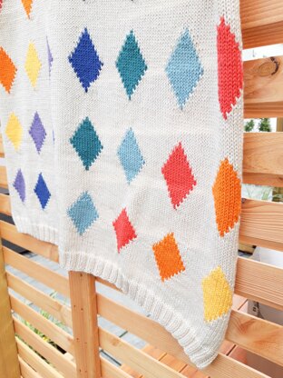 The main challenge of the Victoria blanket is using proper intarsia when switching colours for the different diamonds, and keeping the yarn organized on the backside. Intarsia has the advantage of not only limiting yarn usage for the different colours and keeping the backside neat and tidy, it makes the blanket safe for use even for very small babies – ensuring thus that their fingers don’t get stuck in the loops on the backside.