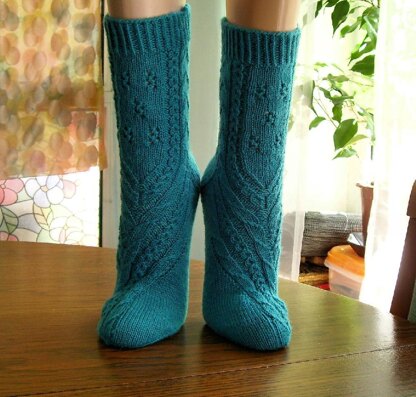 A Top down Sock with special gusset shaping and asymmetrical appearance.