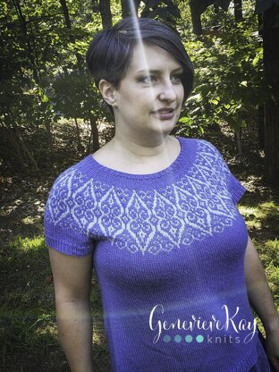 This sweater is knit top-down with a colorwork yoke. After the colorwork section is completed, stitches are placed on hold for each slide and the body is completed first. Sleeve stitches are then returned to needles for sleeve completion. Short sleeve and long sleeve instructions are provided.