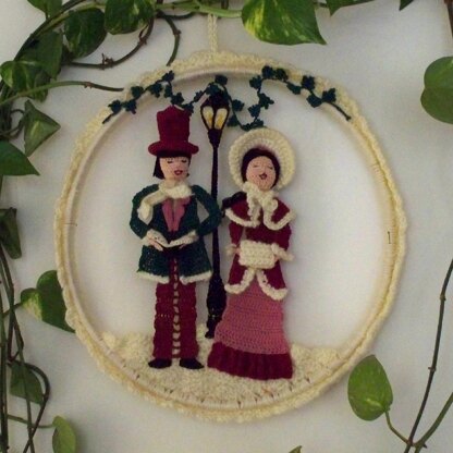 This pattern includes 3 different ornaments or bookmarks for the price with complete instructions on how to make them individually. Or make this wonderful wall hanging for someone you care about or for yourself for that perfect spot on the wall that needs these Victorian Carolers. The pattern includes description of abbreviations and complete instructions. All abbreviations are U.S. abbreviations for crochet. The stitches include sc, hdc, dc, tr, crab (or backwards crochet), side post and back loop work. Contact information is on pattern if you have any problems, feedback or just want to show me how beautiful it looks. You will need: various colors of size 10 crochet thread, 1 skein Caron Simply Soft Yarn or Worsted weight yarn, 2 skein black (or choice of hair color) embroidery floss 1 yard yellow embroidery floss for lamp post flame Small amount of polyester fiberfill. Tapestry needle