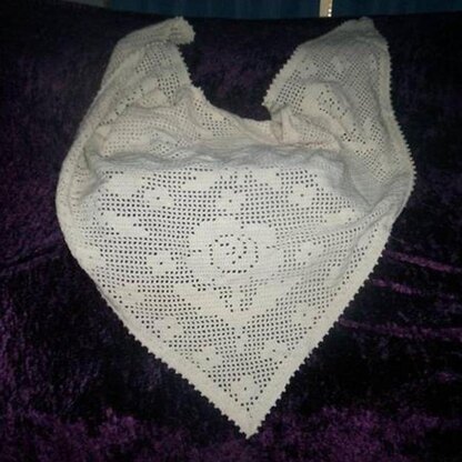 This lovely shawl with its air of antiquity, will keep you warm on cold evenings. The instructions are completely written out, so you will not have to strain your eyes counting out blocks and holes.