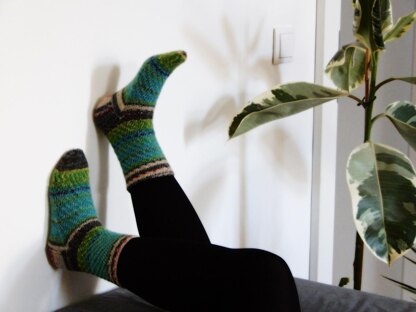 Difficulty level: adventurous beginner (working in the round on DPNs, cuff-down sock construction, knit and purl)
