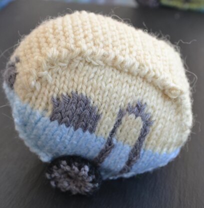 The pattern also explains how you can knit a simpler version, and make it into a keyring (perhaps for your caravan keys). For this you will need a small amount of felt, ribbon and a keyring hoop.
