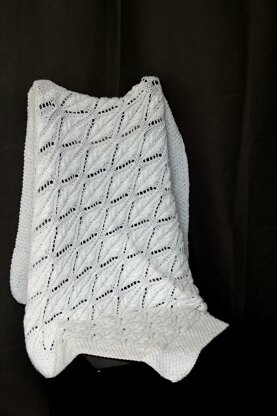 Vinton is a simple one piece baby blanket knitted bottom up. Pattern has both lace and cable elements that create nice and intricate look.