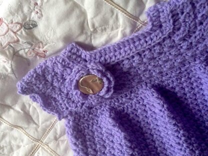 Simple and delicate design in the Violet Lilac Dress. Perfect for your little one! Simple crochet stitches throughout.