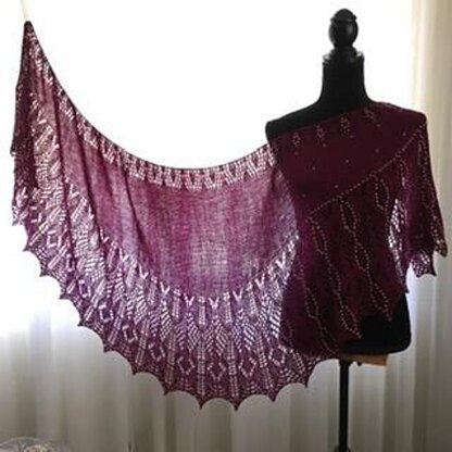 Lovely, feminine shawl with strong beading and big size. It's large enough to wear well, Fingering weight and 6/0 glass beads (1935), 32”/80cm size US 8/5mm circular knitting needles (used only for casting on), 32”/80cm size US 6/4mm circular knitting needles, 25 ring stitch markers, two locking stitch markers, a size US 13/14 (.75/.85) steel crochet hook for adding beads are also needed. This shawl is a true work of art. The beads add luxurious weight, so the shawl drapes beautifully.