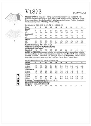 Vogue Misses' Skirts V1872 - Sewing Pattern