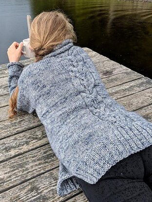 This intriguing and elegant, yet simple Voyager Sweater starts with 2x2 Rib hem, with a side opening. The front and back are joined and worked in the round for two (shorter), or three (longer) pattern repeats. At the armscye continue to work flat, separately for front and back. The two sides are joined at the shoulders by Kitchener stitch. The stitches for the sleeves are picked up along the armscye, start at the underarm, pick up the stitches at the front, continue at the back and join the stitches in the round. Knit the sleeves top down in the round with slight bell shape towards the bottom. The cable is done in the front and back with purl columns next to it, while the rest of the sweater is worked in stockinette stitch. A turtle neck collar of 1x1 rib is worked from picked up stitches along the neck opening.