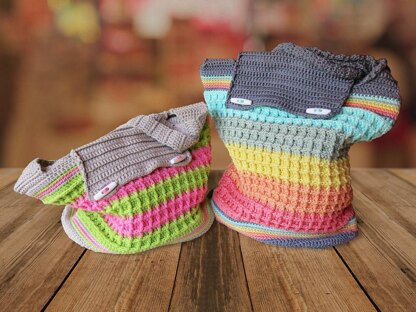 The pattern describes two sizes, but can easily be adjusted to fit the size (height) you need.