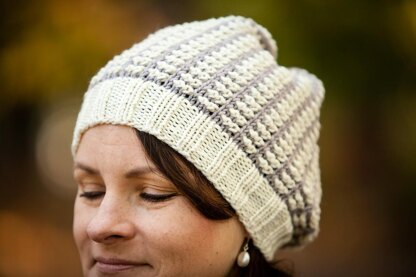 Interesting and easy mosaic/drop-stitch pattern forming a warm and stretchy beanie for cold winter days. You will work with only one color in a round.
