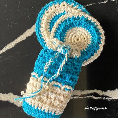 The Waffle Spa Set uses the Waffle Crochet Stitch to great a textured design. The textured design is to help exfoliate the skin while you bathe and wash your face.