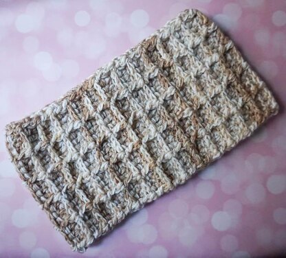 This textured cowl is crocheted with two strands of yarn held together to create a unique color pattern.