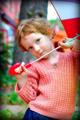 Sweater of champions! Clad your baby, toddler, child or youth in this fun, easy to knit pullover. Knit from the top down, raglan style, in a stretchy and easy to memorize waffle stitch pattern, Waffles also features twisted rib details and an optional button placket collar.