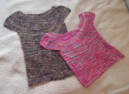 A simple top-down pattern in Stockinette stitch that is easily adaptable if you want to change the length or add a center lace panel for the front. Using a dk yarn with a soft drape makes this a comfortable "go to" top in your wardrobe.