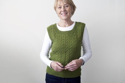 Continuing my foray into cables of late, welcome Walking On Sunshine, a vest this time, worsted weight with a deep scoop neckline. Cable stripes trimmed with simple ribbing are worked bottom-up and seamlessly in-the-round. It’s a meditative knit – perfect for peaceful knitting and all-season wear. Enjoy!