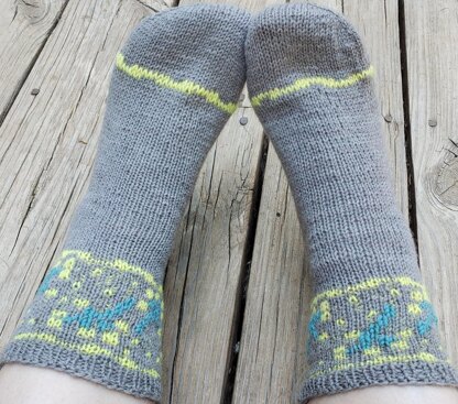 I have always loved projects where I can practice a new technique while still making something useful. These socks were designed with just that in mind. Walking on Sunshine is the perfect pattern for dipping your toes into colorwork if you are new, or for some fun practice, if you’re feeling rusty. An almost vanilla sock pattern, these socks are constructed toe-up with an afterthought heel and just a touch of colorwork at the toes and the cuff. Grab your larger needles if doing stranded colorwork, or a yarn needle if duplicate stitching strikes your fancy. If you are feeling extra daring, blend both! My favorite way to work these socks is to duplicate stitch the band at the toes, use stranded colorwork for C2 at the cuff and then go back and duplicate stitch C3.