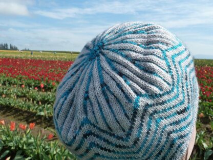 This pattern is named after Wallalute Falls which are on the north east side of Mount Hood. These falls are just west of the dyer's favorite spots - Cloud Cap. Wallalute means strong water which is reflected in the lower portion of the tam and the falling water on the top.