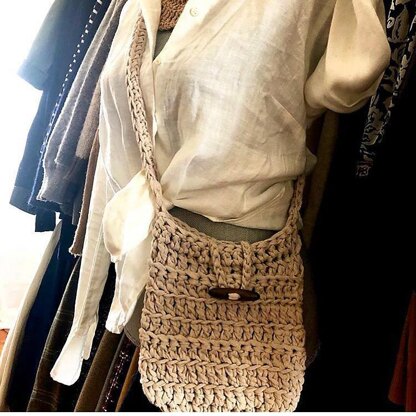 This crossbody bag is crocheted in one piece (honest!) with recycled cotton fiber and adorned with a simple strap and large, reclaimed wood toggle button to make it the perfect summer accompaniment anywhere the day may take you!