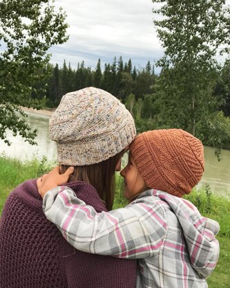 The Wanderer hat is made using two stands of fingering weight yarn held double. It features a cozy folded brim with some fun texture made with just knit and purls.