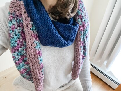 A large crochet shawl pattern using the granny stitch and double crochet stitches. Looks great in a variety of color combinations.