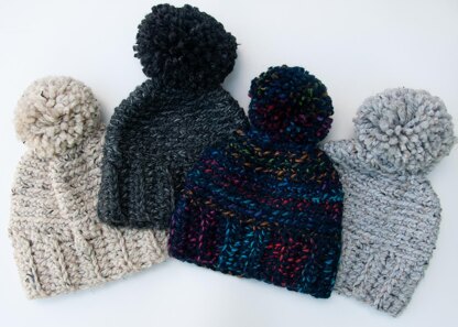 This cozy wool blend beanie is perfect to whip up in an evening (most of my testers had it back within an hour or so). Any super bulky (size 6) yarn will work wonderfully, and it might actually work with two strands of size 4 held together too for a bit of a different texture!