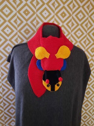 A Kiwiana inspired children's scarf, measuring approx 11cm wide and 116cm long, which is a wearable version of Wanna-Bee (I wanna be a Buzzy Bee™) toy.