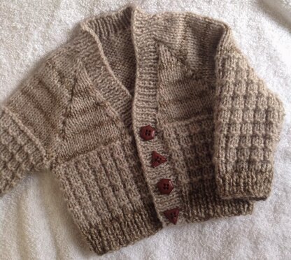 Warm and waffled is the name of this cute little cardigan, as it looks warm and cosy. The waffle stitch pattern is easy to do and has a wonderful look to it. The stripes add a bit of fun with a contrast just a few shades darker. I have knitted this in grey and pink which worked well together. This is worked flat in pieces, the easy to follow pattern would be nice for someone wanting to learn shaping's.