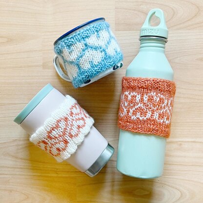 A sweet colourwork cup cosy with three construction variations. Perfect to whip up as a quick gift.