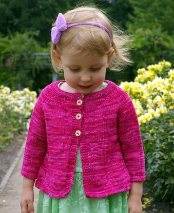 Straightforward to knits whit its top-down construction, it features lovely details such as little butterfly and ruffle hem and is a classic cropped cardigan. This will be just as cute with a pair of jeans, as it will over a fancy dress.
