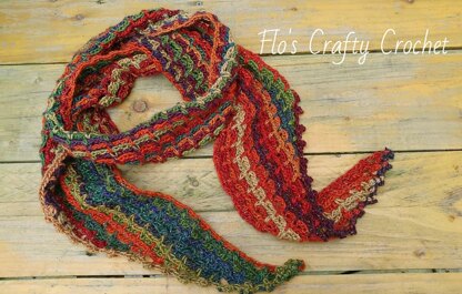 This is a beautiful and lightweight scarf that works up very quickly and will accent any outfit.