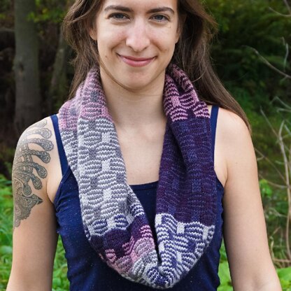 Wavy Infinity Scarf is made of a stunning slip-stitch pattern that is surprisingly easy to create. It's worked in the round to create a warm and cozy double sided fabric that can be worn as a long tube scarf or as a cowl. It starts with a provisional cast-on and when the knitting is completed, both ends are grafted together. Two colors are required to create the scarf but each section of the pattern can be made with different colors, making it an ideal stash-buster. Gauge, needle sizes, dimensions and yardage can vary - the ones given are based on the pictured scarf.