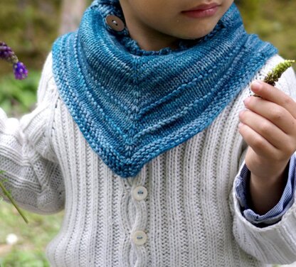 This cowl is a toddler version of Closer. This no-fuss cowl will keep your little one warm, and is perfect for the active toddler. Draping deeply at both front and back, it uses only a tiny bit of sport weight yarn. Like its grown-up version, it is easy to make it larger or smaller.
