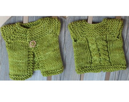 Wee Twist is a super-fast to knit baby sweater, with cable running down the back, and