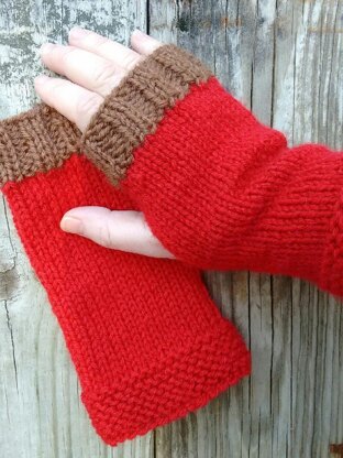 Perfect for new knitters! The pattern has a garter stitch cuff, stockinette stitch body, and finally edged with a k2p2 ribbing. They are knitted flat then seamed up each end leaving an opening for the thumb.