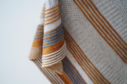 Beautiful, textured shawl, combining three colors. The shawl is worked in bias from cast on tip to the bind off row, increasing stitches at the beginning of right side rows. The pattern includes a photo tutorial for the Diagonal stitch.