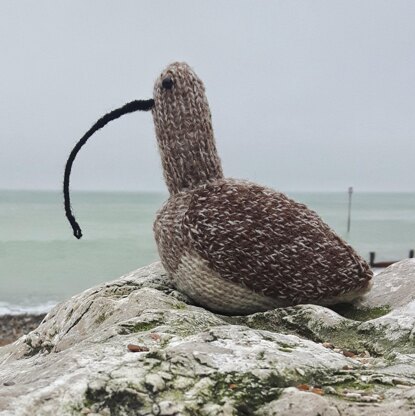 Wendy the Whaap is knitted in beautifully soft Jamieson’s of Shetland DK wool. You’ll need 7g of 120 Eesit/White; 9g of 121 Mogit/Eesit; 7g of 116 Moorit/Eesit; oddments of 101 Natural Black.