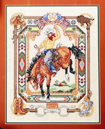 Designed by: Kooler Design Studio. PDF Download - Get into the Spirit of the Old West when you check out this bucking bronco. The design is centered between icons from Western Culture and Native American-inspired border designs.\n\n