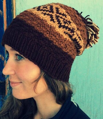 Ever begin filming your own western movie when all of a sudden it begins to snow? “Dang” you think. “How am I supposed to get that authentic western vibe when all my actors are shivering?” Well, at last, your solution has arrived. The Western winter hat! Knit in suitable western colours with a lovely stranded First Nations art inspired motif, and a bit of slouch to help it giddy up into the modern era, the Western hat is just the ticket. Yeeeeehaaawww!