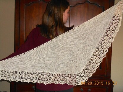 The Westhampton Shawl is worked from the bottom up - using lace edging, then short rows stockinette, finishing with a simple eyelet edging and bind-off. Any lace weight or light fingering weight yarn will work. Also could use sock weight yarn. The silk is particularly stunning for the drape and sheen.