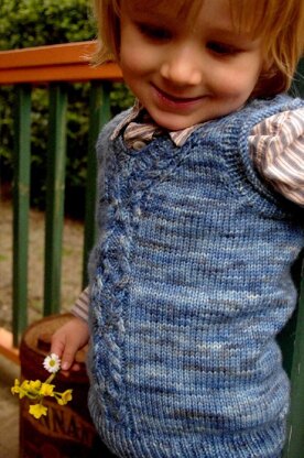 This little vest, designed specifically for Red Riding Hood Yarns, captures the essence of Little Red's surprise and resulting quizzical questions.