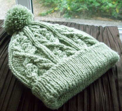 wanted to make a cabled hat for winter. I love cables and wanted something that was both fun and quick to knit. This cable pattern reminded me of a Wheatsheaf at harvest time, though some say it reminds them of warm Winter Kisses? The brim is ribbed (K1,P1) and can be made longer in Version 2 for a double thick folded brim which will be snuggly warm. The pattern is very stretchy. It will fit most heads between 16-22 inches for the smaller size and 22-25 inches for the m/l. The main difference between the Adult S and M/L is the depth of the hat and the cast on for the brim. The sizing is achieved by moving up a needle size and for the M/L size I used a 5.5mm/US9 circular needle for the main part of the hat. The hats are unisex and you have the option to add a pompom for a bit of winter fun.